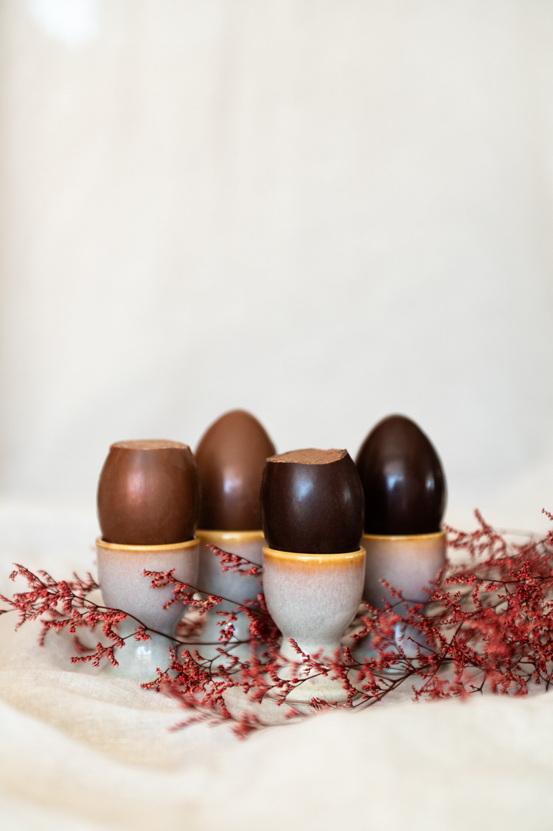 Ce qui rend nos créations de Pâques véritablement uniques et délicieuses réside dans notre engagement indéfectible envers la qualité. Nous utilisons exclusivement du chocolat biologique et équitable, pour un goût incomparable et une démarche respectueuse. Chaque pièce est le fruit d'un travail artisanal minutieux, de nos moulages faits maison à la confection de notre praliné, garantissant une expérience gustative exceptionnelle à chaque fois.